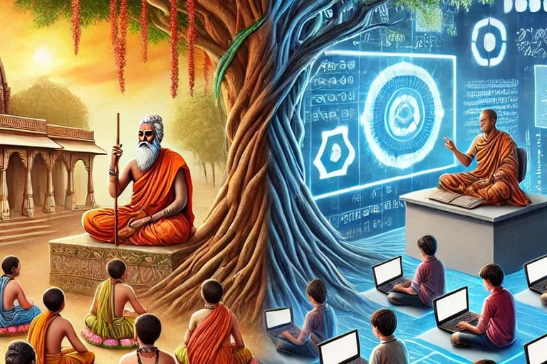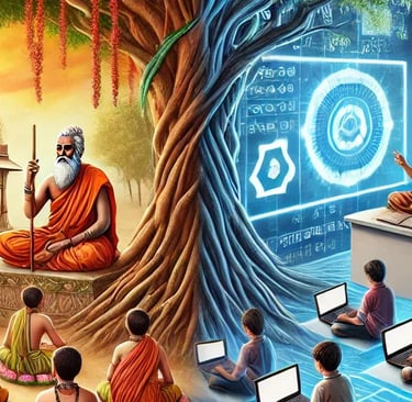 The Gurukul Education System is one of the oldest forms of holistic learning in India, rooted in the Vedic tradition. It was not just a method of teaching but a way of life, where students (shishyas) lived with their teacher (guru) in a gurukul—a simple residential school set in a natural environment.